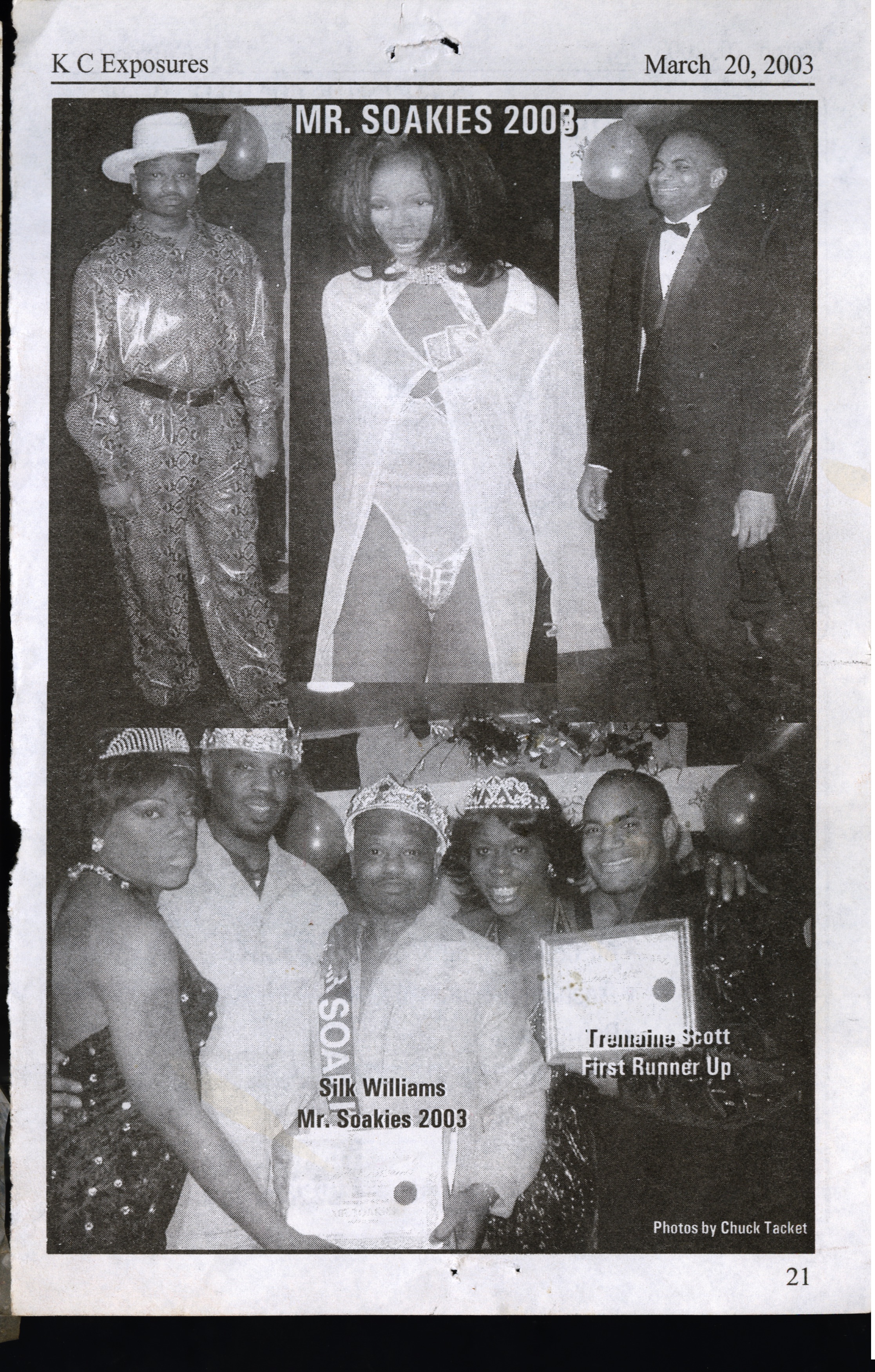 - The crowned winner of Mr. Soakies 2003, Silk Williams (left), pictured alongside "Tremaine Scott, First Runner Up" in K.C. Exposures.