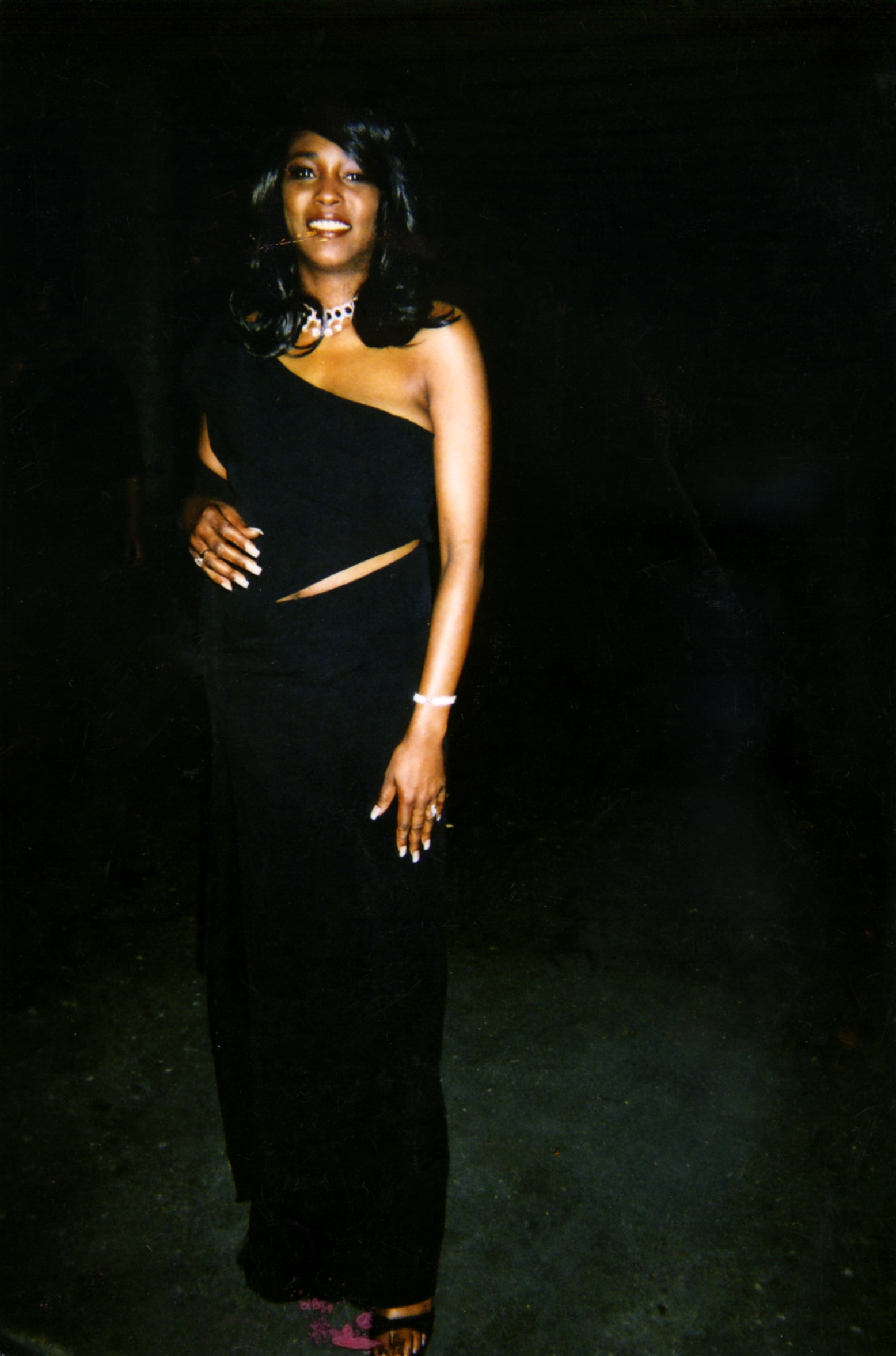 - Tracy Carrington poses in a black, asymmetrical dress.