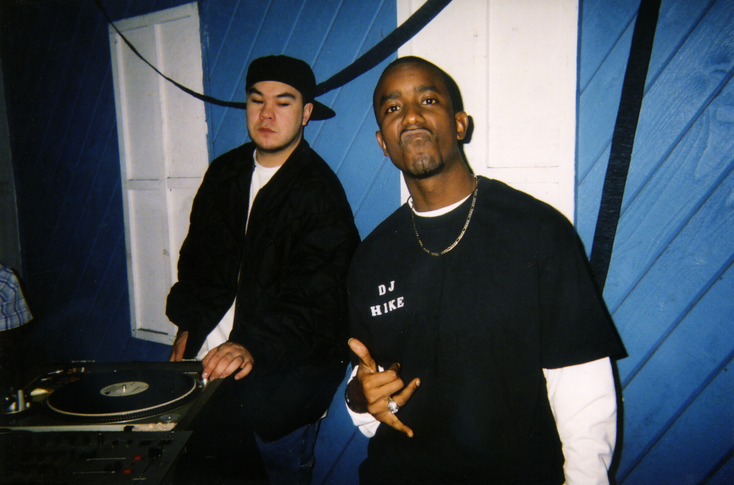 - "DJ SoulMutt and DJ Hike pose behind the DJ booth at Soakie's," starla_carr_collection, {B/qKC}. ca.1993-2004. https://bqkc.1800nasi.net/items/starlacoll030.html