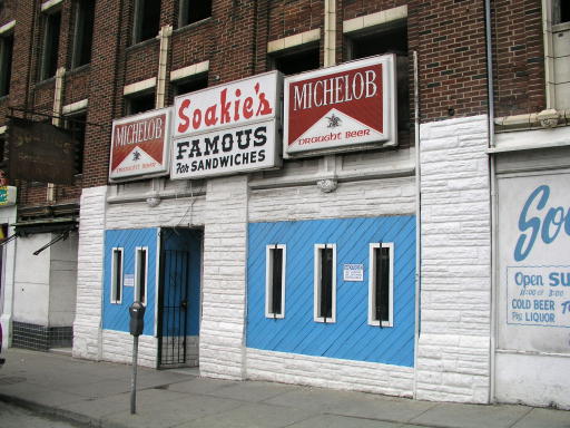 Soakie’s functioned primarily as a packaged liquor and sandwich shop, recognizable by its sign’s slogan “Famous For Sandwiches;” the bar also cashed checks for those who didn’t have bank accounts or didn’t want the hassle of making an extra trip to the bank5. According to an early 2000’s internet chat room, the sandwiches were delectable, and many downtown workers frequented there during their lunch time6.